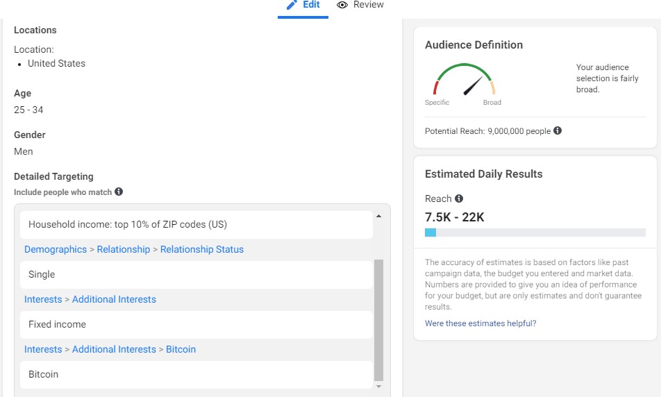 Facebook for example has the ability to target very specific demographics such age, location, financial status, and financial interests; and they tell you how much the campaign would cost with great certainty.